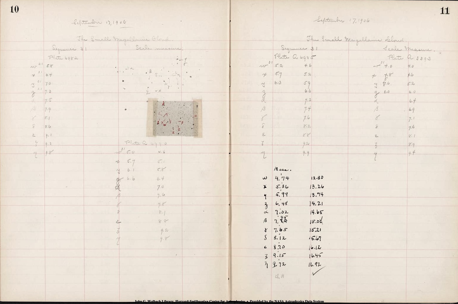 Image: Leavitt, H. S. (1906). Measures of Comparison Stars. Small Magellanic Cloud. Project PHAEDRA: Preserving Harvard's Early Data and Research in Astronomy. Harvard College Observatory observations, logs, instrument readings, and calculations. Sequence volume 19, p. 2527. https://ui.adsabs.harvard.edu/abs/1906phae.proj.2527L. Provided by the SAO/NASA Astrophysics Data System.
